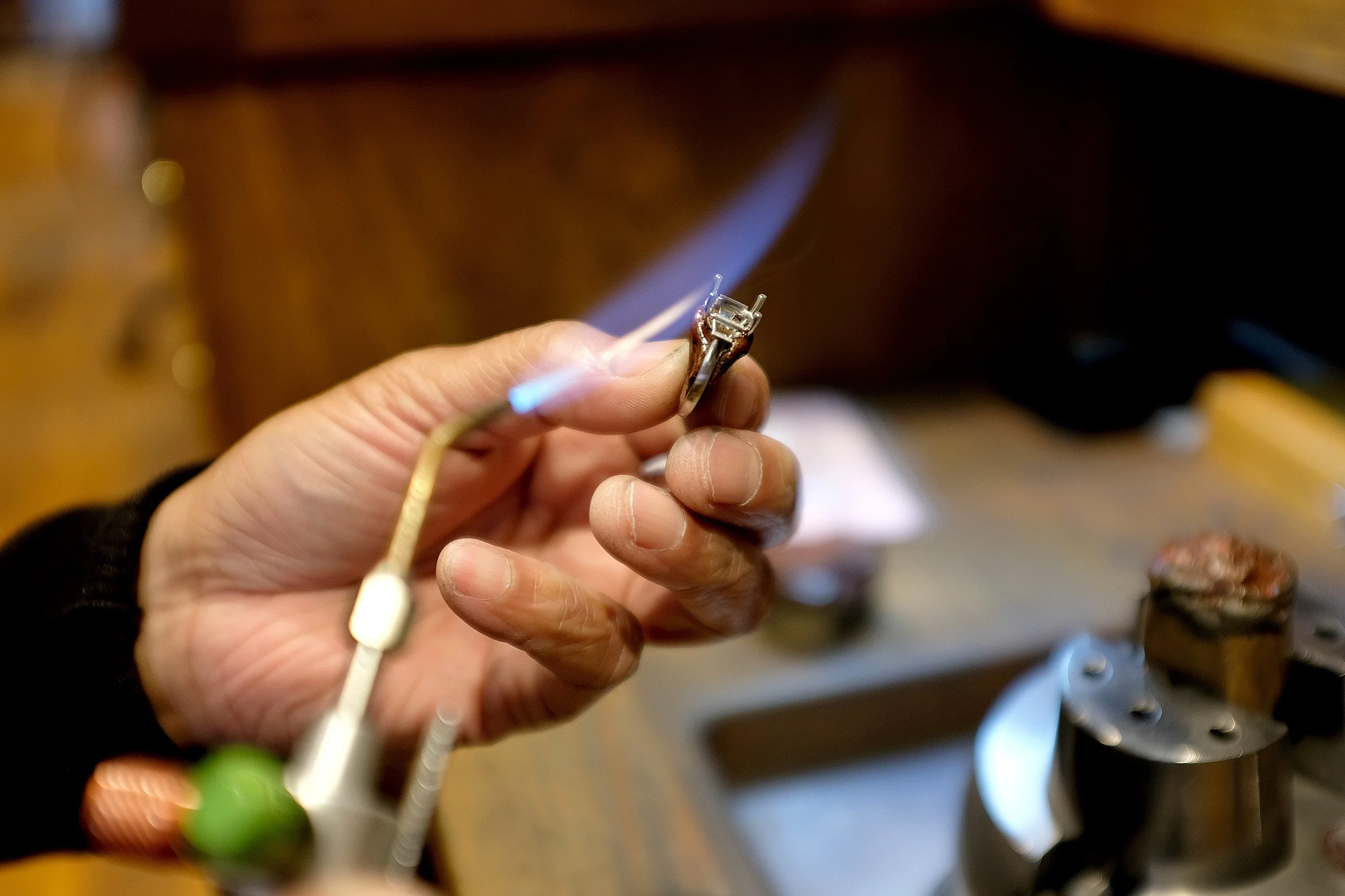 There are three fundamental skills every goldsmith must master: control of the jeweller’s torch, precise handling of bench tools such as files, burrs, and saws, and expert use of the modern laser welder. These tools form the backbone of the trade, and while every project must be completed using these core techniques, how each goldsmith chooses to execute them is entirely their own. There are no fixed methods or industry standards that limit creativity—each piece is a reflection of the maker’s relationship with their tools, materials, and accumulated experience. Machines just do not get the finesse and precision you achieve with hand tools so mastering these skills is vital.
